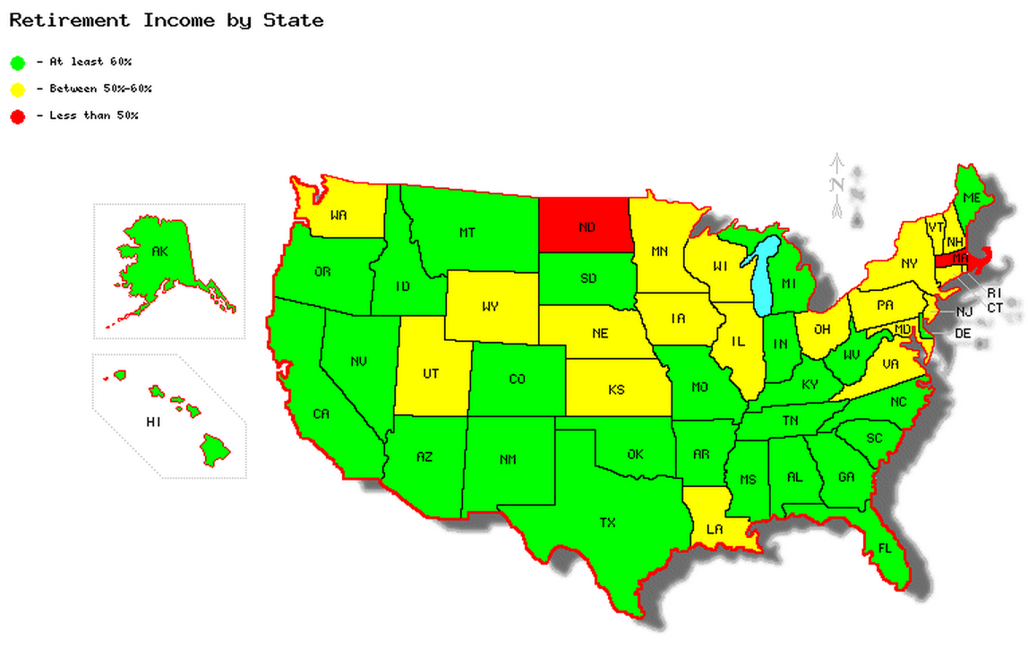 The latest retirement study is out, and it doesn't paint a pretty picture for the coming retirement crisis in America. According to statistics compiled by the Census Bureau and analyzed by the folks at Interest.com, among the 50 states and Washington, D.C., there are only two places where people make enough money to enjoy a comfortable retirement: The District of Columbia and Nevada.
