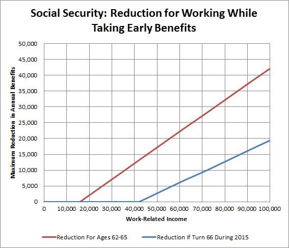 Above those limits, though, you'll start losing money. For those aged 65 and under, at the end of 2015, the SSA deducts $1 in annual benefits for every $2 over the limit. Those who turn 66 during 2015 have a $1 deduction for every $3 they earn over the limit.