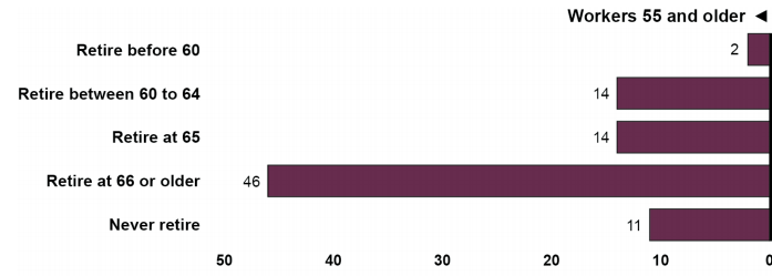 According to a 2015 study by the Government Accountability Office, almost half of those age 55 or older -- who are not yet retired -- say that they plan to wait to retire until after the age of 66.