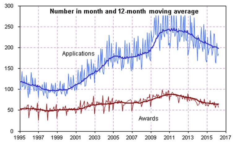 According to the Social Security Administration (SSA), nearly 9 million Americans received disability benefits for at least part of 2015. Despite this fairly staggering number of beneficiaries, though, the SSA's disability insurance (SSDI) program has actually been declining around 65% of all applications over the last decade: