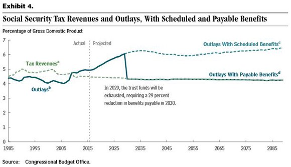 Since Social Security spending already outpaces tax revenue, and the Congressional Budget Office estimates benefits will need to be cut by 29% in 2030 absent any changes, some believe the full retirement age should be increased from 67 in order to 70 to reduce the program's annual spending.