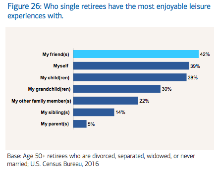 According to MLAW's latest study -- Leisure in Retirement: Beyond the Bucket List -- it could surprisingly be the latter. That's because the majority of retirees say their enjoyment depends more on who they do an activity with than what they are doing. If the choice is between golfing alone or cleaning up trash with your kids and grandkids -- most retirees will gladly throw on a pair of gloves and collect the garbage.