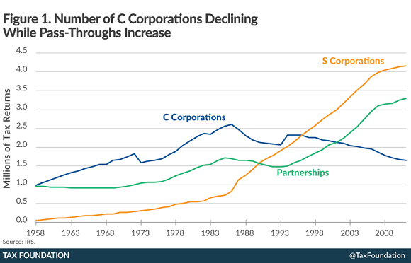 Traditional corporations taxed under subchapter C of the Internal Revenue Code, also known as C corporations, have become increasingly unpopular in the U.S. over time. The U.S. has about 1 million fewer C corporations in existence than it did immediately after the passage of comprehensive tax reform packages in 1986, according to a recent study from the Tax Foundation, and the nation is on pace to lose about 60,000 C corporations each year.