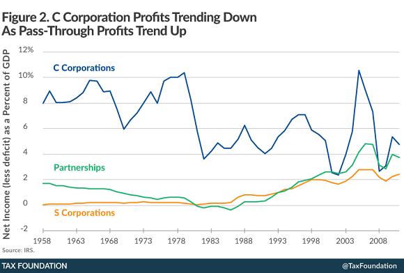 By structuring businesses as pass-through entities, all income gets taxed directly to shareholders. With many taxpayers paying lower individual tax rates than the corporation would pay, the business as a whole ends up paying less than it would under the current corporate tax system.